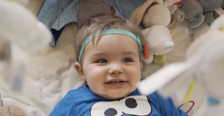 Fabian er 12 måneder og blev født med en lukket øregang. Da Ponto fra Oticon Medical opnåede enestående resultater med hensyn til benledning hos spædbørn, fik Fabian tilpasset en Ponto 3 på et Softband i en alder af blot otte måneder. Målet var at give Fabian de bedst mulige indledende betingelser for sprogtilegnelse.